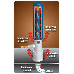 The vortex tubes incorporated in the EXAIR Cabinet Cooler Systems are constructed of stainless steel. The wear, corrosion and oxidation resistance of stainless steel assures long life and maintenance-free operation.