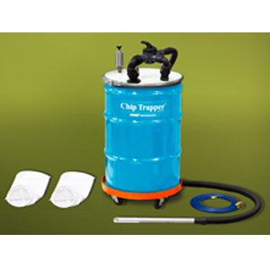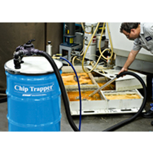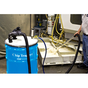 The new Chip Trapper™ (patent pending) offers a fast, easy way to clean chips, swarf and shavings out of used coolants and other liquids. The Chip Trapper vacuums the coolant or liquid that is filled with debris and traps all the solids in a reusable filter bag.