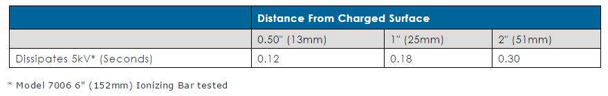 The unique design of the shockless Ionizing Bar offers improved performance and reliability in industrial applications. Life expectancy has been extended by insertion molding the stainless steel ion emitters into a durable plastic. There are no openings or grooves to accumulate dirt that could cause shorting or arcing. A 5kV power source provides high performance, eliminating frequent burnouts commonly associated with traditional 7kV bars.