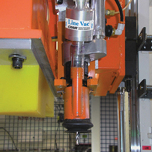 Line Vac conveyors are ideal for moving large volumes of material over long distances. A small amount of compressed air is injected through directed nozzles to produce a vacuum on one end and high output flows on the other, with instantaneous response. The material flow rate is easily controlled with a pressure regulator. An optional bracket permits easy mounting. No moving parts or electricity assures maintenance-free operation.