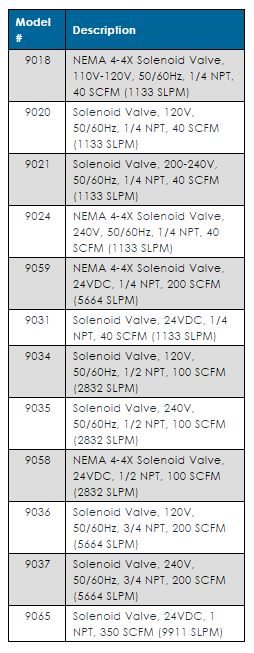 Solenoid Valves are available in a variety of flow rates and voltages. All models are UL Listed and are CE and RoHS compliant.